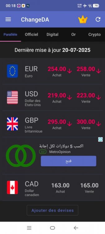 • laliche changed the title to Suivi du Taux de change de l' Euro, Dollars .. €/$/£ en Dinars?
