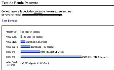 branco Posté(e) le 1 avril 2008 Share Posté(e) le 1 avril 2008 salut a tous voici le test de ma bande passante (assilabox 512) et ce n'est pas un poisson d'avril! et c'est tous les jours pareil sans parler des deconnections et je suis a blida Citer Lien vers le commentaire Partager sur d’autres sites More sharing options...